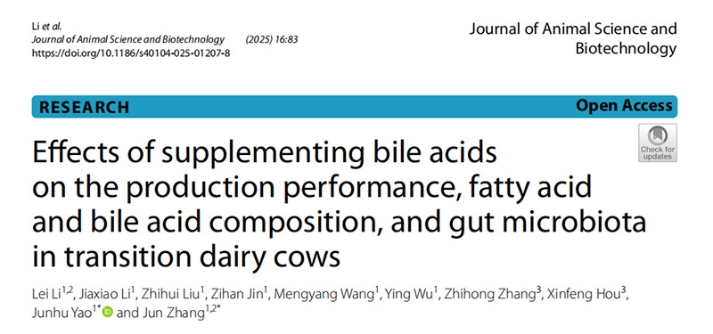 摘要:在围产期,奶牛容易出现能量负平衡,严重时会导致生产性能下降和健康状况下降。近年来人们发现胆汁酸(BAS)不仅可以作为脂肪乳化剂,还