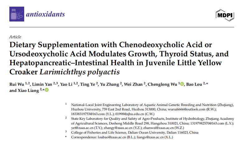 本周最新发表速看(D篇,10 40):1 鹅去氧胆酸 黄颡鱼2 土著益生菌-黏膜健康 尼罗罗非鱼3 酶解猪骨粉 大口黑鲈4 功能性藻类饲料 金头鲷5 黄