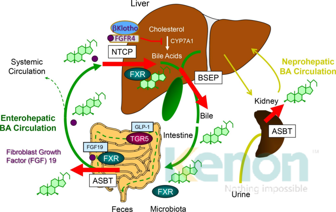 图1 肠肝循环(Beuers U,2025)BSEP ABCB11:胆汁盐输出泵,是胆汁酸的主要小管输出系统。ASBT IBAT SLC10A1:钠依赖性胆汁酸转运体,胆