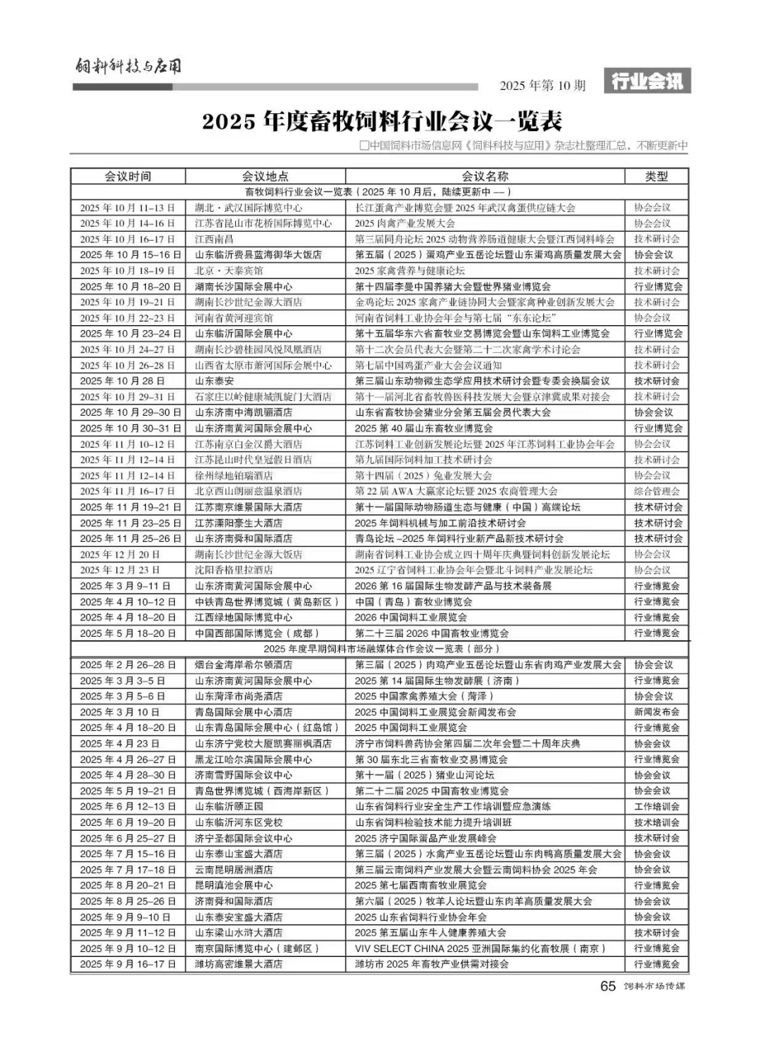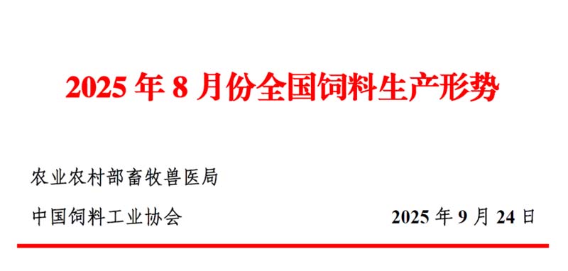 表1 2025年8月全国工业饲料生产情况表2 2025年8月饲料企业配合饲料平均价格表3 2025年8月饲料企业浓缩饲料和添加剂预混合饲料平均价格注