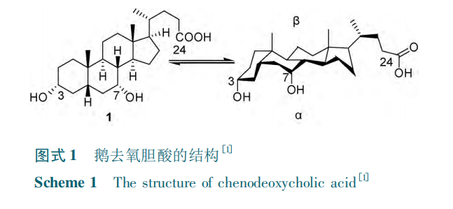 鹅去氧胆酸鹅去氧胆酸(chenodeoxycholic acid,CDCA),即3α,7α-二羟基-5β-胆烷酸。鹅去氧胆酸是天然的初级胆汁酸,是由1个刚性的甾环